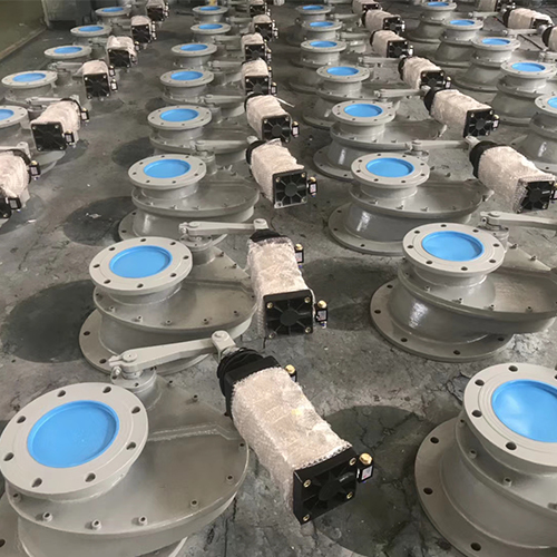 气动旋转阀通常也称之为摆动阀、平移阀,它的密封形式采用硬密封。它是由一个旋转气缸带动阀门轴承,阀板是通过花键与阀门轴承所固定,阀板在气缸执行器运动下动作。气缸上装有磁敏开关、行程开关或者接近开关来对阀门位置进行反馈,反馈的信号直接传送给PLC控制柜。