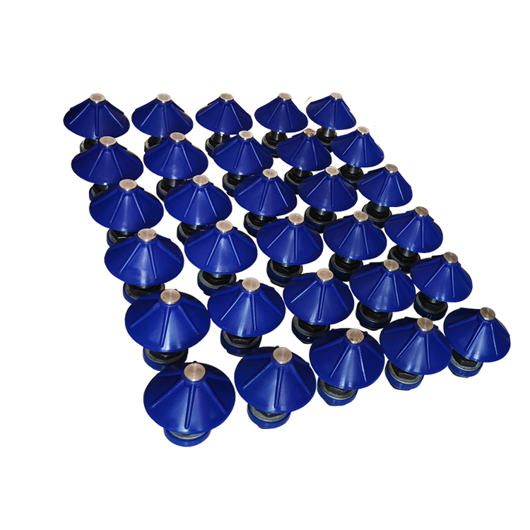 底部流化组件其结构相对比较简单,他各个元件主要是在现场进行安装、密封用的。底部流化组件其实就是一个流化的作用,什么叫做流化呢,其实很简单即当固体颗粒在接触作用下表现出类似流体状态的现象称为流态化,也就是流化。流化组件大概有流化杆、流化伞帽、固定螺栓、防松胶垫组成,流化杆通常材质为碳钢,其根据图纸进行精密加工后与其它零件配套使用。其中流化伞帽、防松胶垫属于橡胶材质,进口硅胶材质经过特殊处理加工,其耐温可达到300℃左右,能够有效地防治高温的侵扰。